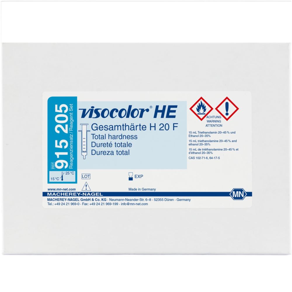 Test VISOCOLOR HE Twardość ogólna H 20 F jest zestawem dzięki, któremu możemy oznaczyć twardość ogólną metodą miareczkowania kompleksometrycznego. Metoda jest analogiczna do APHA 2340 C; DIN 38406-E3-3; DIN 38409-H6.