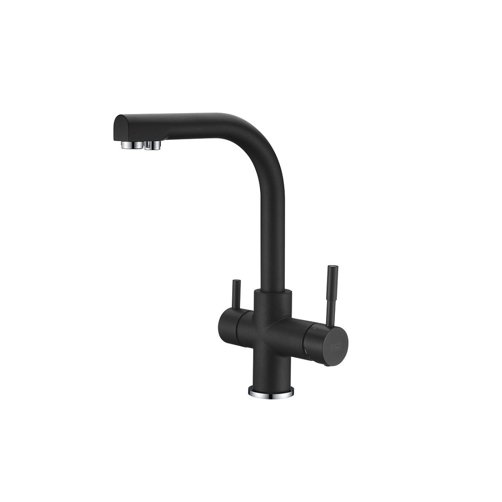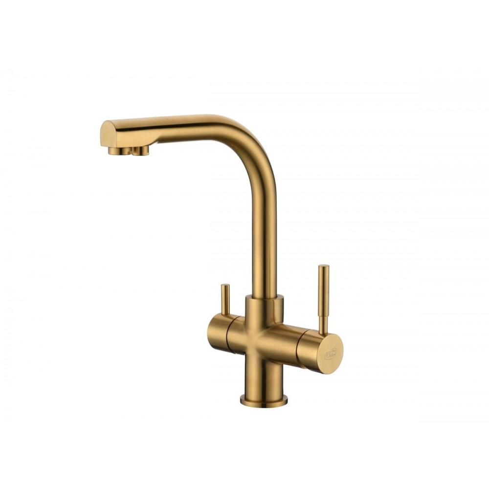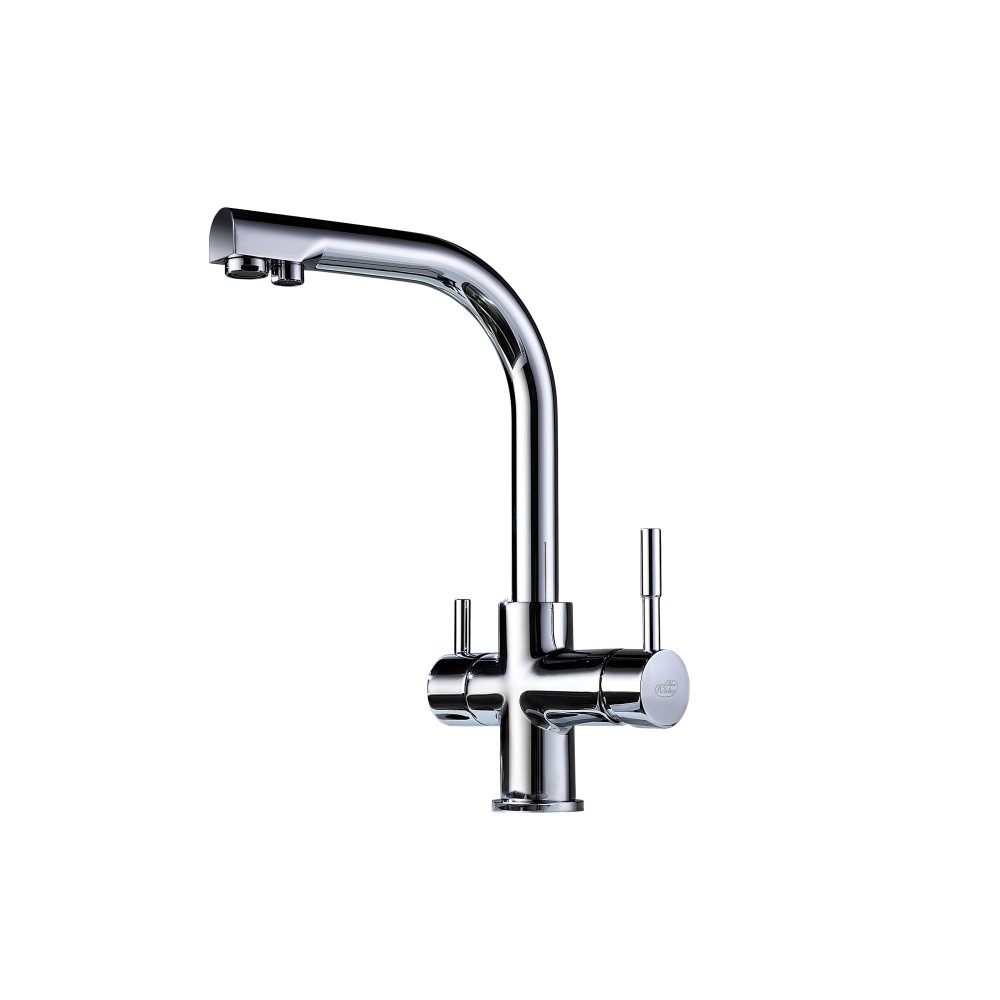Bateria firmy Blue Water do wody sieciowej (zimnej i ciepłej) oraz wody filtrowanej w wersji chromowanej. W komplecie dostępna z akcesoriami niezbędnymi do prawidłowej instalacji. Nowoczesna i stylowa bateria, wykonana z materiałów najwyższej jakości. Bateria wyposażona jest w dwa perlatory, osobno do ujścia wody sieciowej (zimnej i ciepłej) oraz osobno do wody filtrowanej.