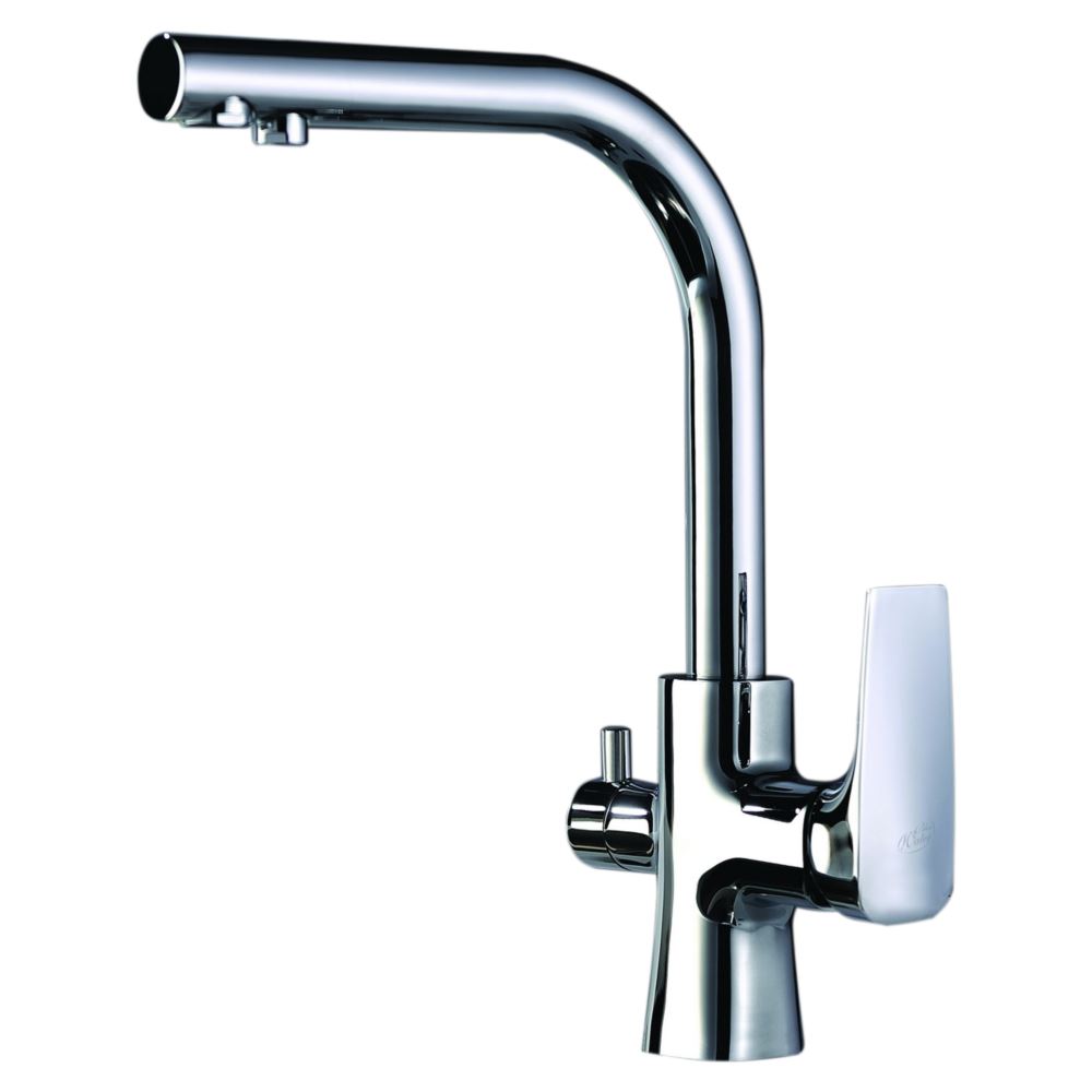 Bateria firmy Blue Water do wody sieciowej (zimnej i ciepłej) oraz wody filtrowanej. W komplecie dostępna z akcesoriami niezbędnymi do prawidłowej instalacji. Nowoczesna i stylowa bateria, wykonana z materiałów najwyższej jakości. Bateria wyposażona jest w dwa perlatory, osobno do ujścia wody sieciowej (zimnej i ciepłej) oraz osobno do wody filtrowanej.