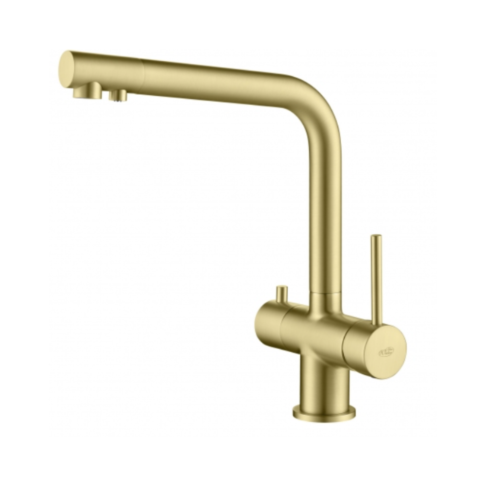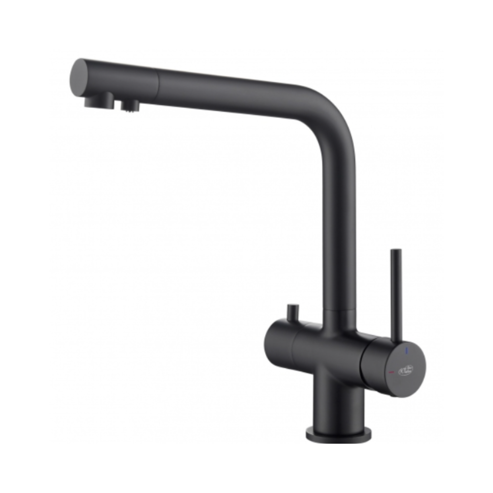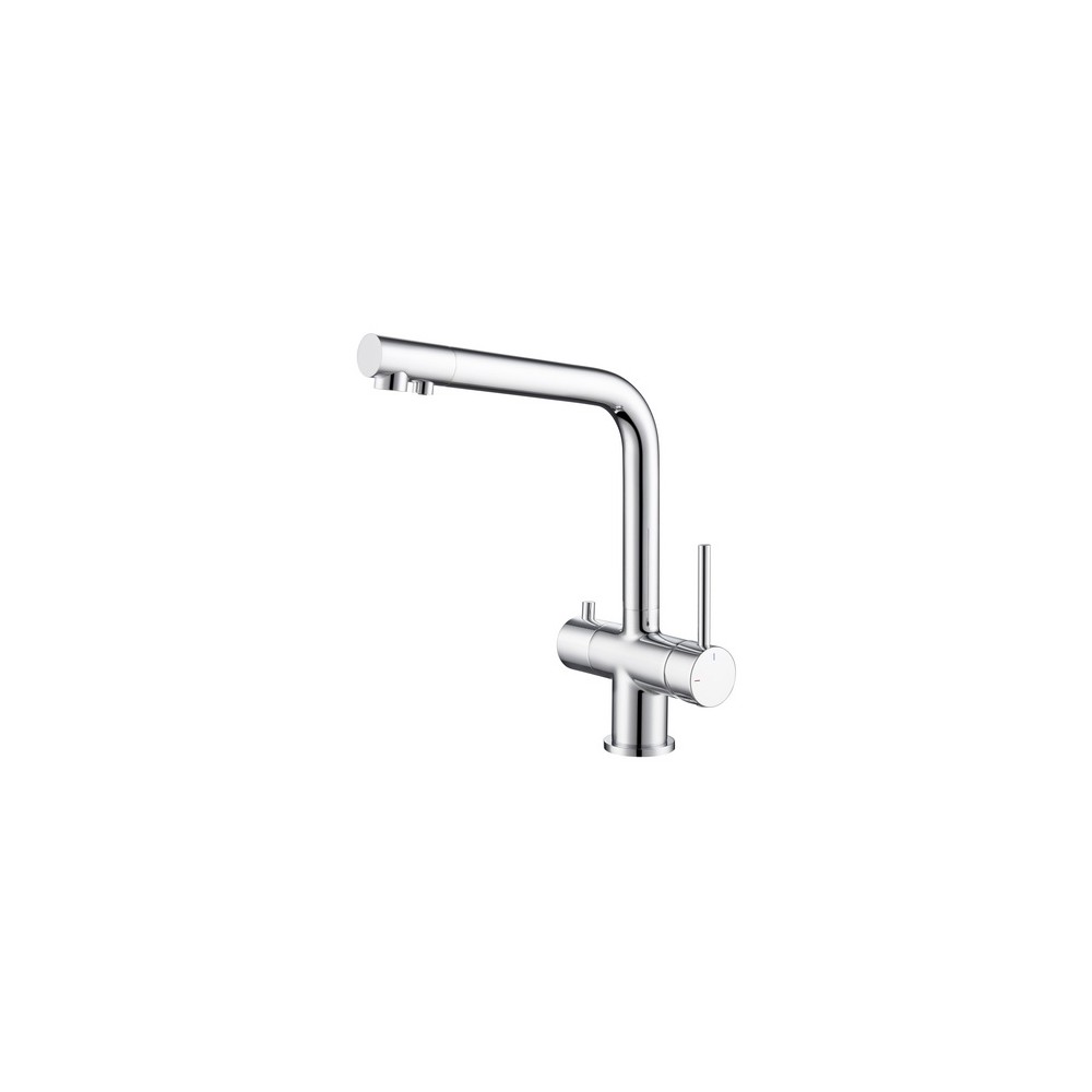 Bateria firmy Blue Water do wody sieciowej (zimnej i ciepłej) oraz wody filtrowanej. W komplecie dostępna z akcesoriami niezbędnymi do prawidłowej instalacji. Nowoczesna i stylowa bateria, wykonana z materiałów najwyższej jakości. Bateria wyposażona jest w dwa perlatory, osobno do ujścia wody sieciowej (zimnej i ciepłej) oraz osobno do wody filtrowanej.