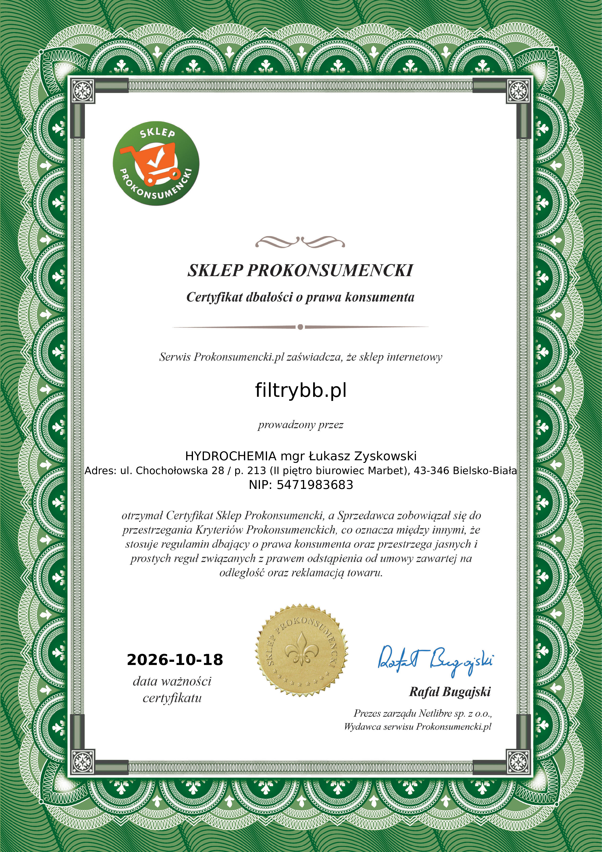 Działając kilkanaście lat w branży uzdatniania wody nasza firma zyskała doświadczenie i wiedzę, dzięki czemu możemy współpracować z najlepszymi producentami oraz dostawcami. Produkty, które możecie Państwo zakupić w sklepie filtrybb.pl to towary atestowane, wykonane z najwyższej jakości materiałów, światowej klasy producentów. Fakt, że nie każdy produkt można zwrócić lub wymienić podyktowany jest dobrem naszych Klientów oraz koniecznością zapewnienia jak najwyższej jakości dostarczanych produktów. Towary sprawdzamy już na etapie odbioru od Producenta, starannie pakujemy, znakujemy, aby nie dopuścić do sytuacji, kiedy produkt zamontowany w nieznanej nam instalacji zostaje skażony, zwrócony nam i przekazany innemu Klientowi. Inną grupą towarów bezzwrotnych są produkty, które zamawiamy specjalnie na życzenie Klienta oraz takie, które są trudne w przechowywaniu bez spadku ich jakości i właściwości (np. testy do wody). W trosce o komfort zakupów zachęcamy do kontaktu z naszym Biurem Obsługi Klienta, który pomoże w doborze odpowiedniego towaru oraz udzieli wszelkich niezbędnych informacji dotyczących produktów znajdujących się w sklepie filtrybb.pl.