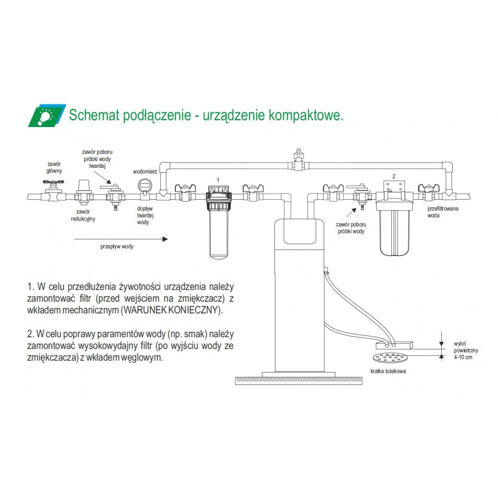Urządzenie wyposażone zostało w wysokiej jakości butlę ciśnieniową marki SRUCTURAL PENTAIR/USA. Zmiękczacz można dodatkowo doposażyć w zawór BY-PASS