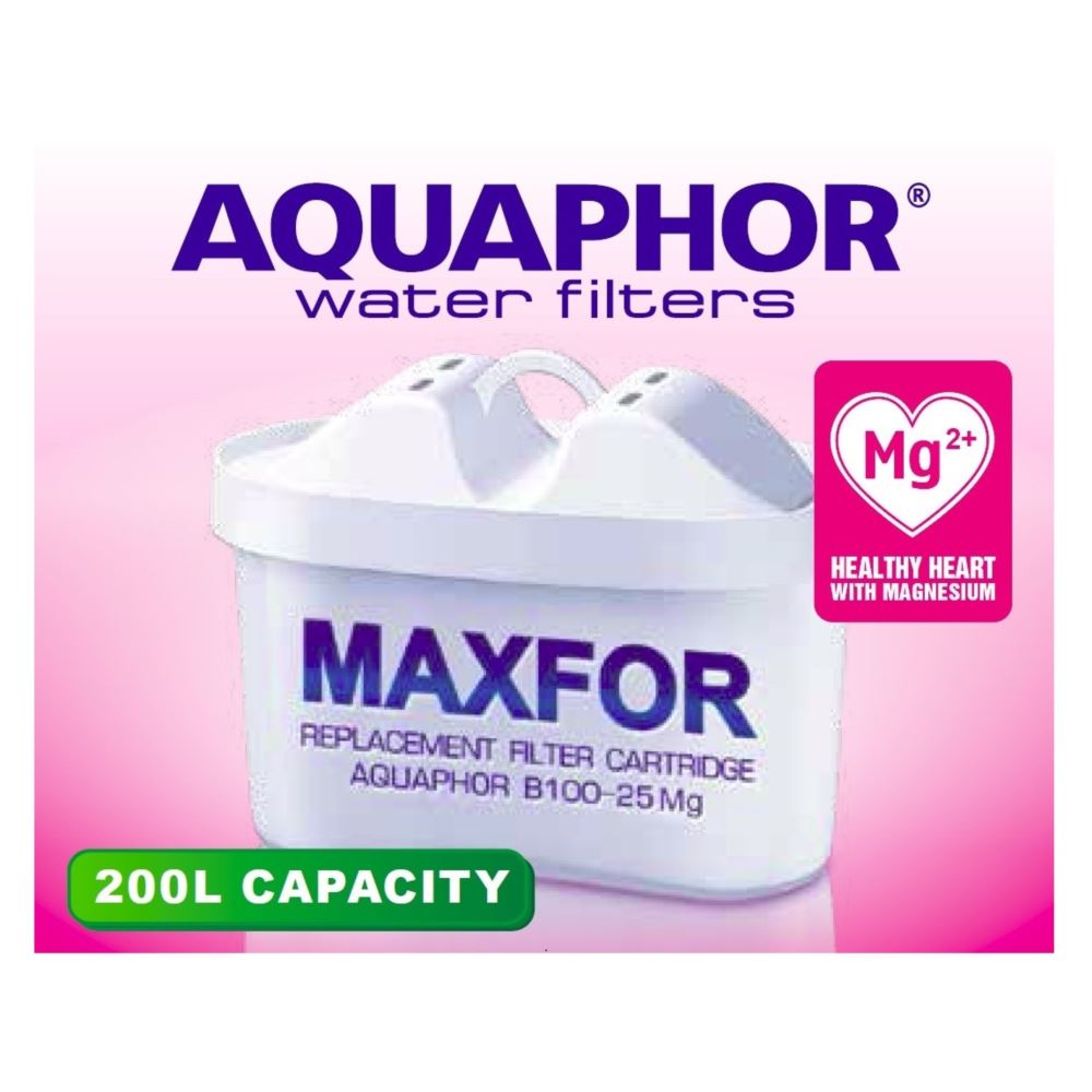 Uniwersalny wymienny wkład filtrujący B25 Maxfor 2+ marki Aquaphor wzbogaca wodę wodociągową w dobroczynny magnez. Przeznaczony jest do użytku domowego, jednak możesz go także używać w miejscach o większym zapotrzebowaniu. Dzięki zastosowaniu węgla aktywnego skutecznie usuwa z wody chlor, fenol, pestycydy, żelazo, niwelując nieprzyjemny posmak i zapach wody. Wydajność wkładu filtrującego wynosi 200 L wody wodociągowej, co odpowiada ok. 2 miesiącom użytkowania przez 3-4 osobową rodzinę, w zależności od twardości wody.