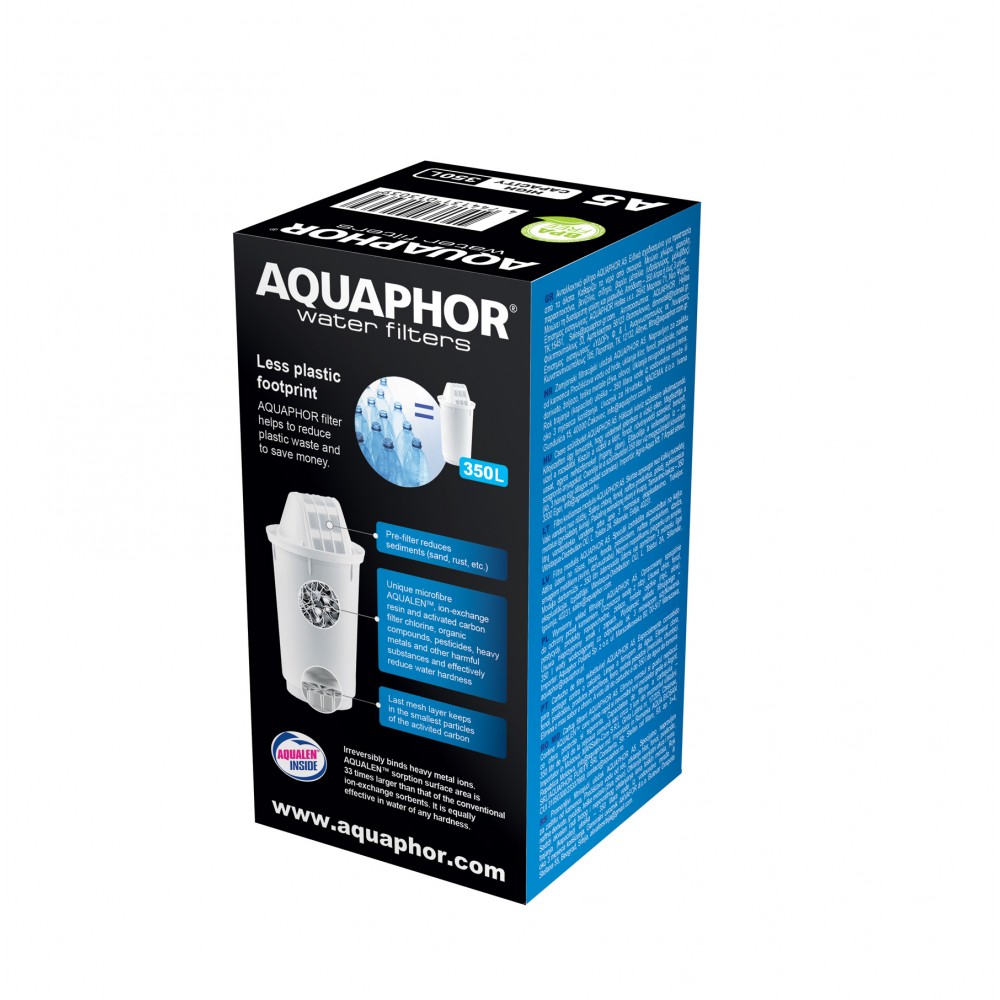 Wkład filtrujący AQUAPHOR A5 skutecznie usuwa wszelkie zanieczyszczenia z wody wodociągowej, w tym aktywny chlor, metale ciężkie, pestycydy, herbicydy, fenole, produkty ropopochodne. Zapewnia ochronę bakteriostatyczną. Zalecany do wody o średnim stopniu twardości (do 250 mg/l). Odpowiedni dla dzbanka filtrującego AQUAPHORE Provence, Orleans, Smile, Prestige oraz Dalia.