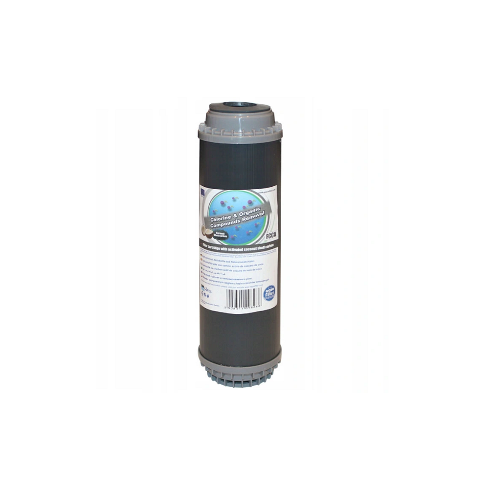 Podstawowy wkład filtrujący wodę z zanieczyszczeń organicznych i chloru FCCA stosowany jest w filtrach standardu 10 cali (również w filtrach o wysokości wkładów 9 7/8 cala i 9 3/4 cala). Granulowana forma złoża węglowego w minimalnym stopniu powoduje spadki ciśnienia z zachowaniem wysokiej zdolności uzdatniania wody. Aquafilter FCCA stosowany może być również w klasycznych filtrach podzlewozmywakowych serii FP2 (Duo) i FP3 (Classic) oraz w obudowach filtrów narurowych montowanych na instalacji wody zimnej. Bitumiczny węgiel aktywowany cechuje wysoka zdolność adsorpcji (wiązania zanieczyszczeń na zewnętrznej powierzchni). Ta cecha jest wykorzystywana w eliminowaniu chloru z wody wodociągowej oraz zanieczyszczeń organicznych z wody pochodzącej z własnej studni. Poprawa utlenialności wody wpływa korzystnie na barwę, smak i zapach wody. Złoża węgla aktywnego klarując wodę, nadają jej charakterystyczny, dobry smak.