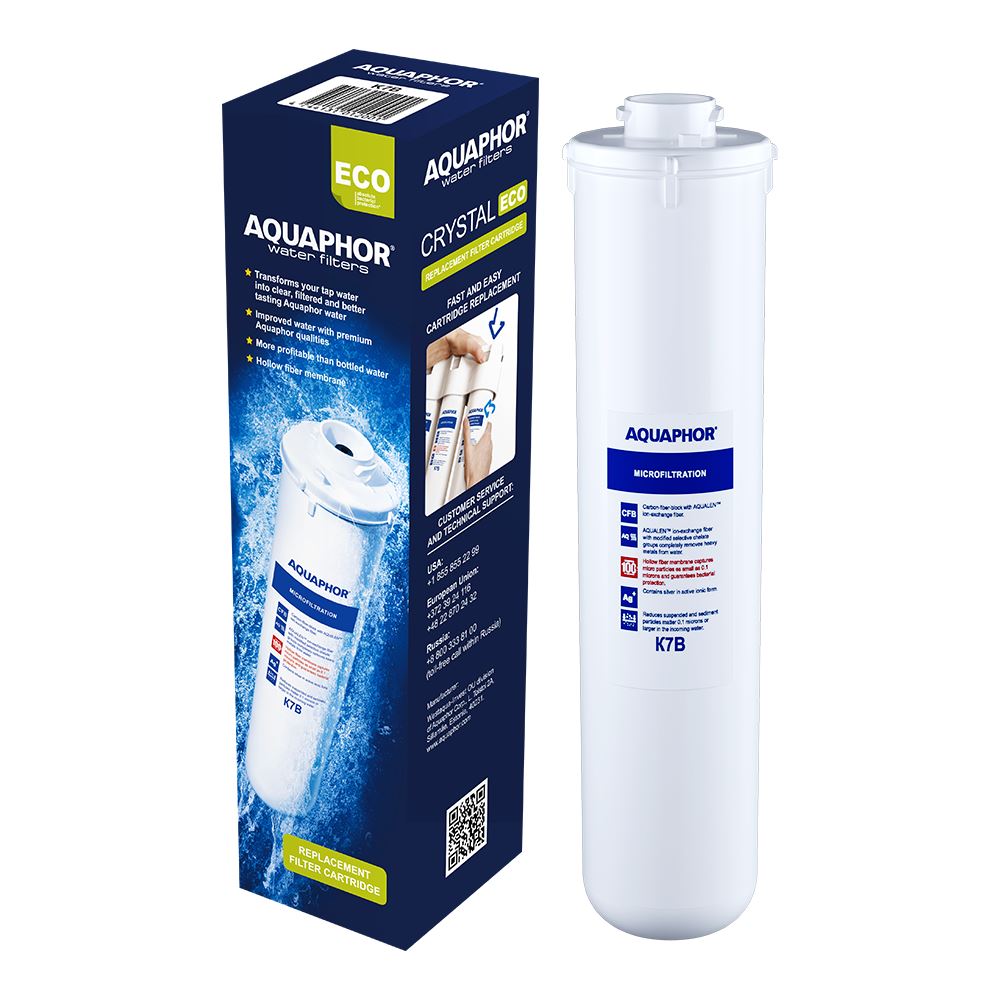 K7B to wymienny wkład filtrujący służący do mikrofiltracji wody, przeznaczonej do spożycia, składający się z membrany kapilarnej oraz bloku węglowego z włóknem CFB. Usuwa z wody najdrobniejsze zanieczyszczenia do 0,1 mikrona. Zapewnia 100% ochronę przed bakteriami. Wykonany zgodnie z technologią bloków węglowych z włóknem z zastosowaniem aktywowanego węgla kokosowego. Używany do ostatniego etapu oczyszczania wody pitnej. Skutecznie usuwa z wody wszelkie związki organiczne i metale ciężkie. Dzięki zastosowaniu włókna Aqualen strumień wody zostaje równomiernie rozprowadzony po całej powierzchni wkładu, co umożliwia uzyskanie najwyższego stopnia oczyszczania wody. Zawiera bezpieczne srebro w aktywnej formie jonowej.