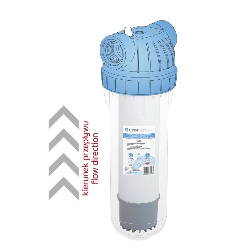 Nowoczesne wkłady zawierające węgiel aktywny z łupin orzechów kokosowych, o doskonałym stosunku ceny do jakości z serii GAC firmy UST-M. Niezwykle skuteczne w usuwaniu niechcianych zanieczyszczeń z wody i poprawie jej smaku i zapachu. Wkłady GAC wypełnione są wysokiej jakości granulowanym węglem aktywnym z łupin orzechów kokosowych certyfikowanym przez NSF. Woda przepływa wzdłuż wkładu (z dołu do góry), dzięki czemu pozostaje dłużej w kontakcie ze złożem filtracyjnym. Wielkość ziaren węgla aktywnego została dobrana w sposób zapewniający maksymalną skuteczność adsorpcji zanieczyszczeń. Wkład węglowy GAC typowo stosowany jest w filtrach odwróconej osmozy i filtrach podzlewozmywakowych. Standardowe wymiary pozwalają na stosowanie go w całej gamie filtrów wody (również innych producentów). Wysokiej jakości złoże węgla aktywowanego, skutecznie redukuje obecny w wodzie chlor i zanieczyszczenia organiczne. Poprawia utlenialność wody, tym samym korzystnie wpływa na zapach, smak i jej barwę. Węgiel aktywny redukuje również z wody obecny w niej ołów. Wkłady z węglem aktywowanym w mniejszym stopniu ograniczają przepływ wody (tłumienie ciśnienia) oraz z uwagi na wzdłużny przepływ wody przez obudowę wkładu, uzdatnia ją skuteczniej.