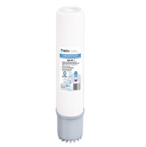 Wkłady GAC NS-L wielkości 20 cali (typu SLIM) wypełnione są wysokiej jakości granulowanym węglem aktywnym z łupin orzechów kokosowych (certyfikowany przez NSF) impregnowanym nanosrebrem. Doskonale usuwają chlor, jego pochodne oraz substancje organiczne, poprawiając tym samym smak, zapach oraz barwę wody. Dodatek srebra chroni przed rozwojem drobnoustrojów wewnątrz wkładu skutecznie wydłużając jego żywotność.