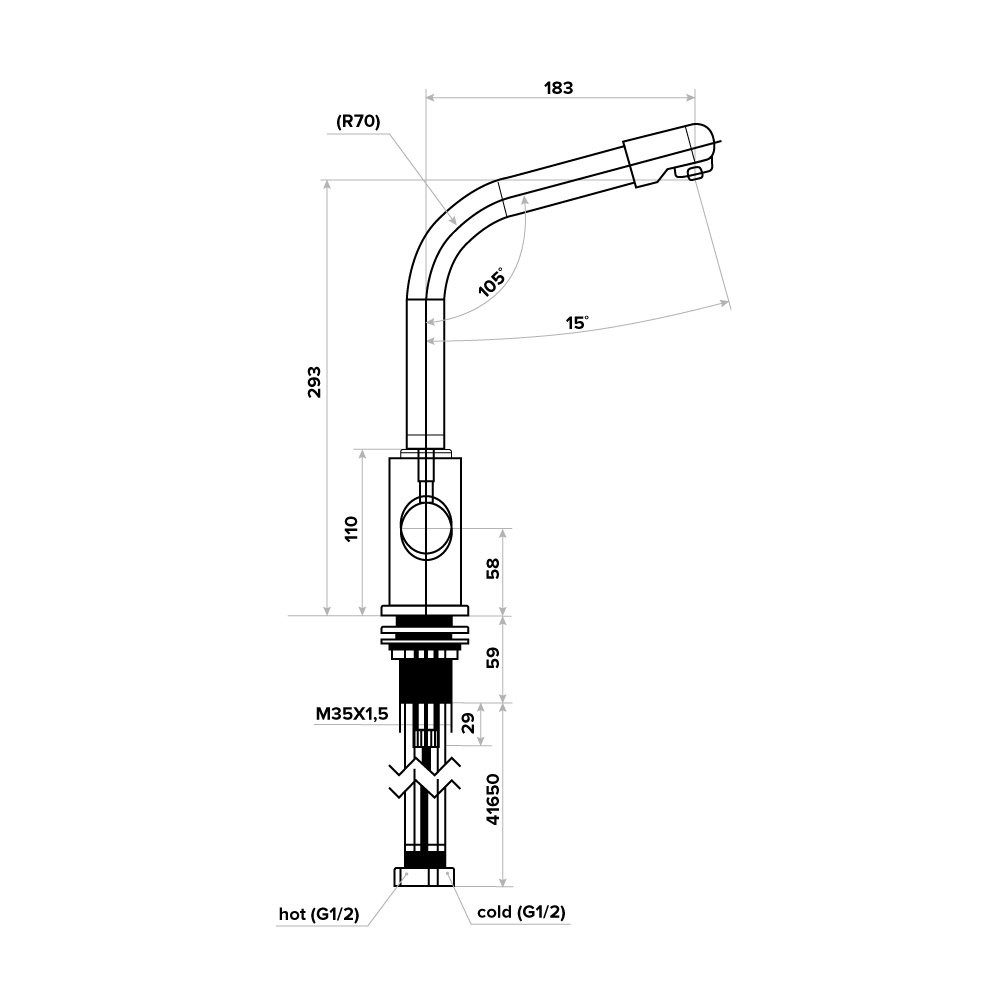 Wszystkie baterie są w całości wykonane ze stali nierdzewnej SUS 304 dopuszczonej do kontaktu z żywnością i składają się z tylko najlepszej jakości elementów. Na powierzchni baterii nie pozostają odciski palców. Wysoka wylewka ze stali nierdzewnej zapewnia maksymalną użyteczność. Zwiększony promień obrotu baterii o 180 stopni. Łatwa w instalacji na dowolnej powierzchni.