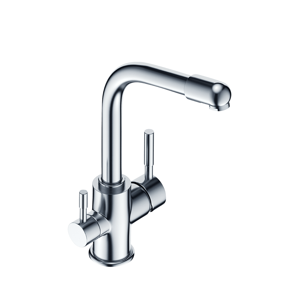 Trójdrożna bateria do wody sieciowej (zimnej i ciepłej) oraz wody filtrowanej w wersji chromowanej. W komplecie dostępna z akcesoriami niezbędnymi do prawidłowej instalacji.