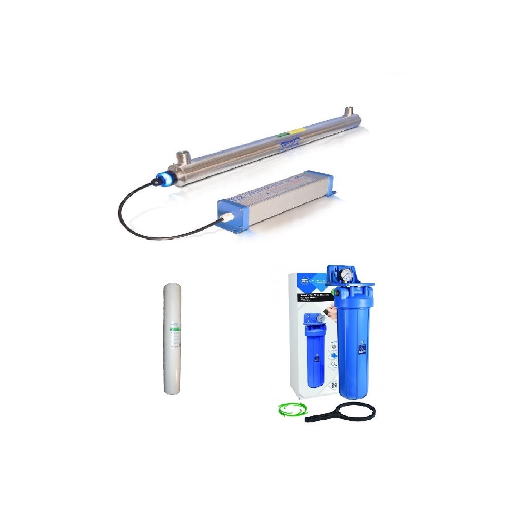 Super zestaw: Lampa UV D8, Korpus BB20 z wkładem piankowym 1 mikron.