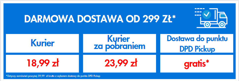 *Darmowa dostawa powyżej kwoty zakupów 299 zł brutto nie obejmuje zakupów poza terytorium Rzeczypospolitej Polskiej.