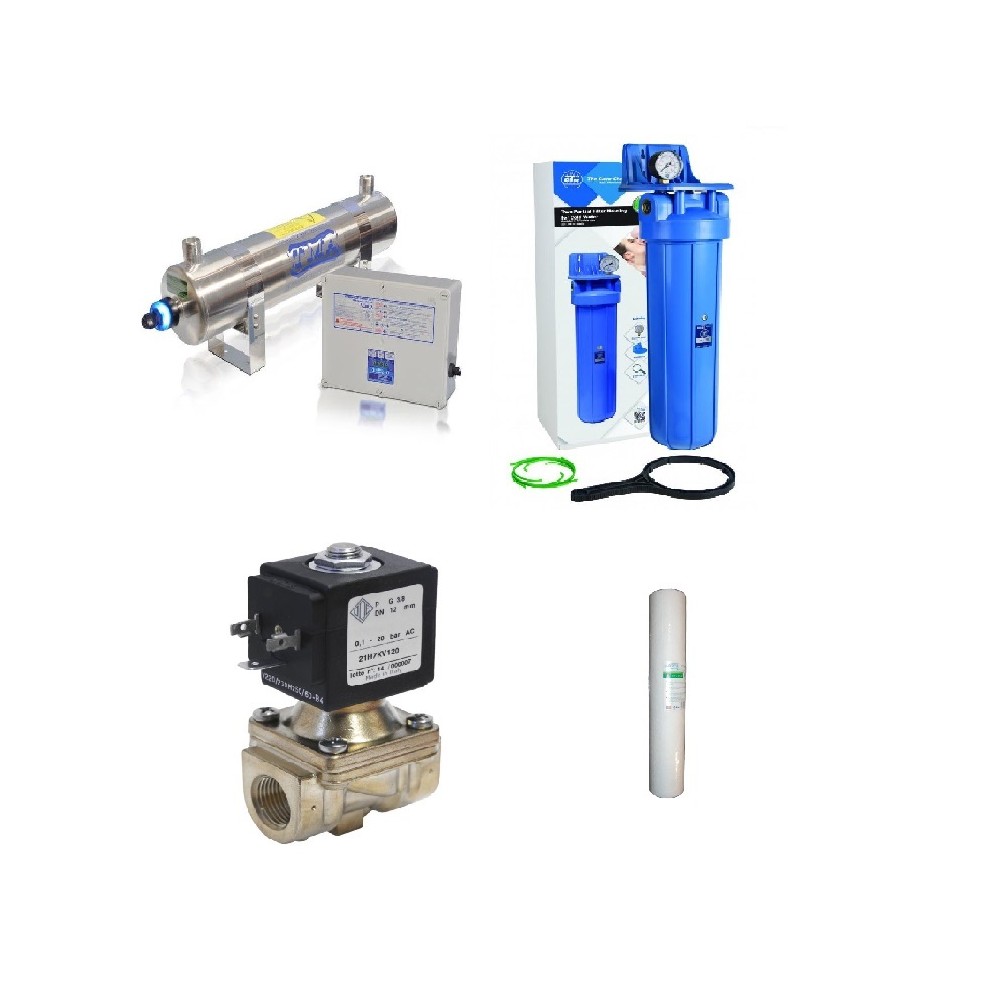 Super zestaw: Lampa UV D6-S, Korpus BB20 z wkładem piankowym 1 mikron oraz elektrozaworem.