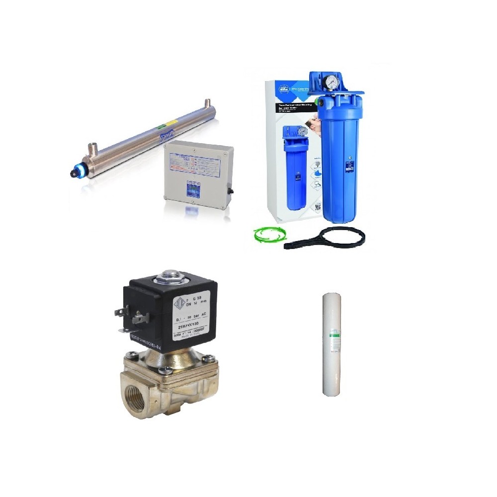 Super zestaw: Lampa UV D8-S, Korpus BB20 z wkładem piankowym 1 mikron oraz elektrozaworem.