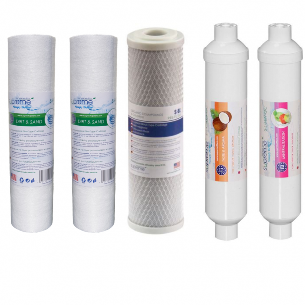 Zestaw wkładów odwróconej osmozy Supreme Premium - mały i duży serwis QC (szybkozłączki):